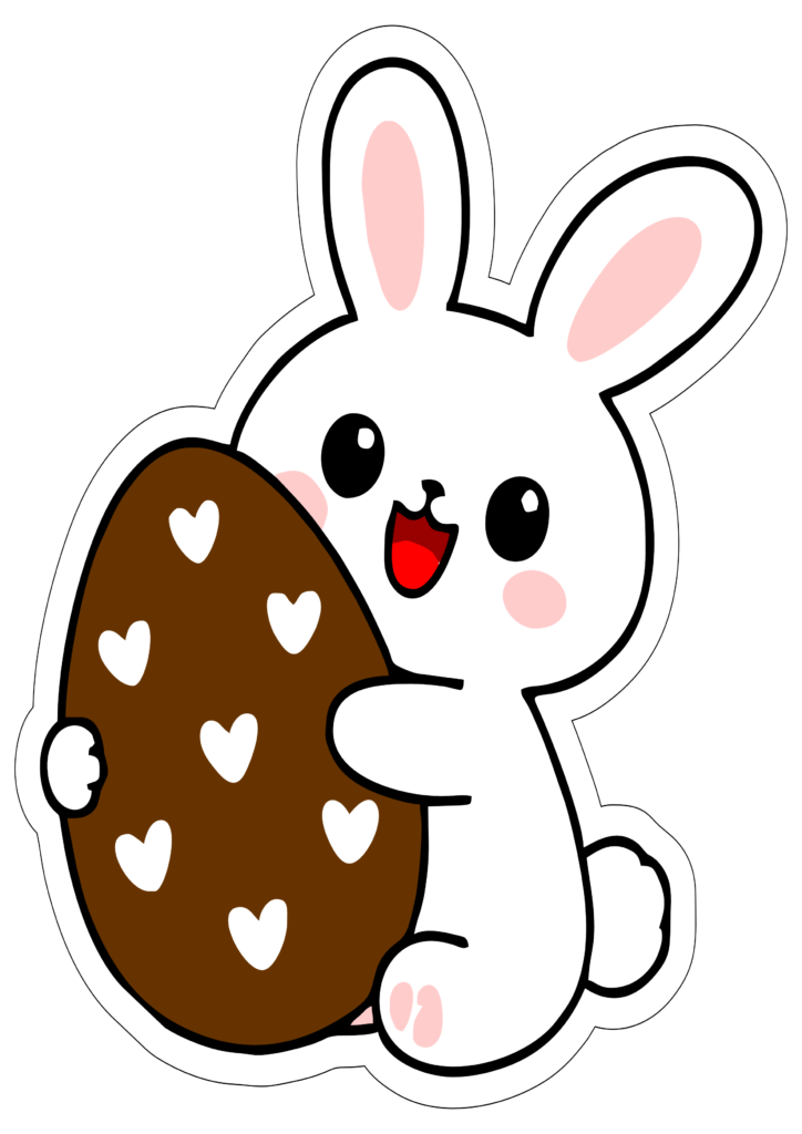 Coelhinho da páscoa segurando um ovo de chocolate gigante desenho simples chibi ilustração png