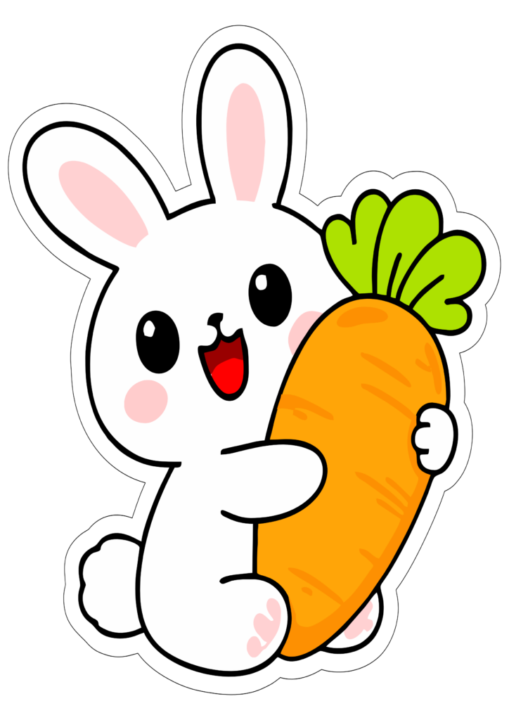 Coelhinho da páscoa segurando uma cenoura gigante desenho simples chibi png