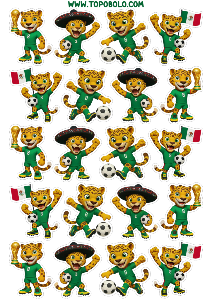 Mexican mascot world cup soccer 2026 Zayu Jaguar printable stickers 20 images png