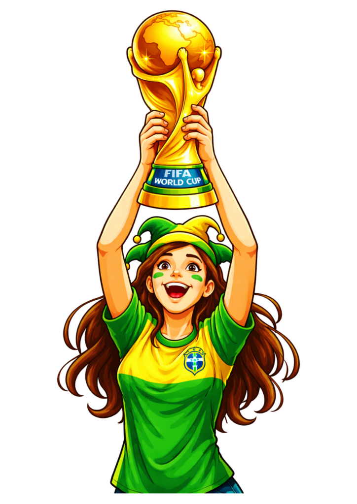 World cup 2026 brazilian fan holding trophy simple drawing transparente background png