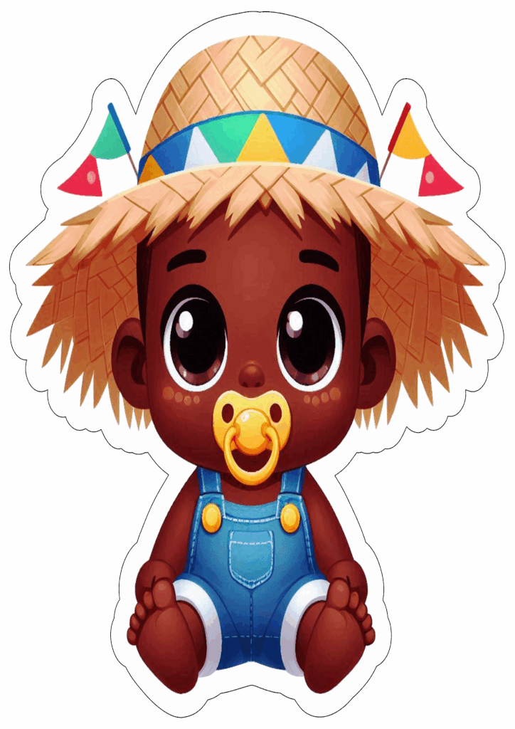 São João desenho simples bebê caipira chapéu de palha festa junina fofinho imagem engraçada baby moreninho negro fundo transparente com contorno png