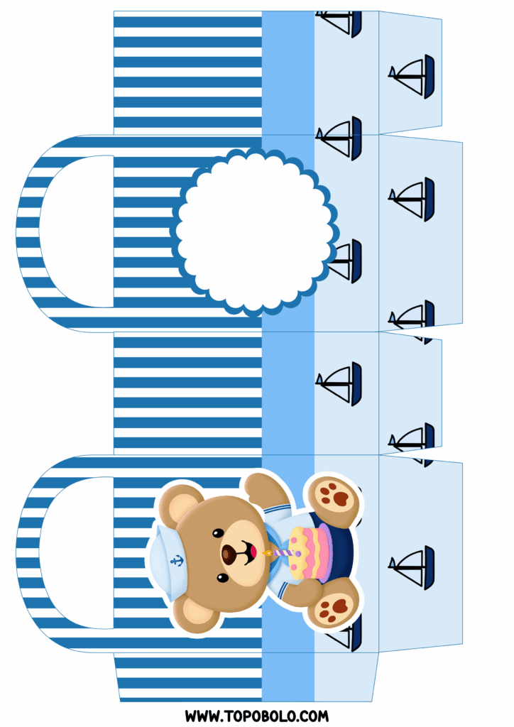 Urso marinheiro molde para bolsinha mimo de aniversário pronto para imprimir recortar e decorar festa infantil png